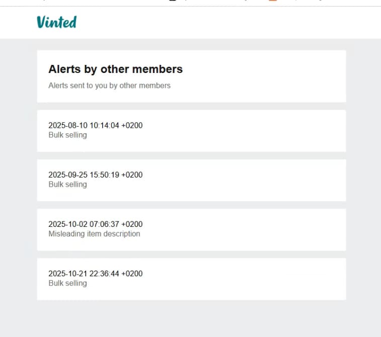 Unfortunately, Vinted currently tends to trust reports made by other users more than the sellers themselves and can ban accounts automatically based on these reports. This leads to situations where your competitors can mass report your items to get you banned.